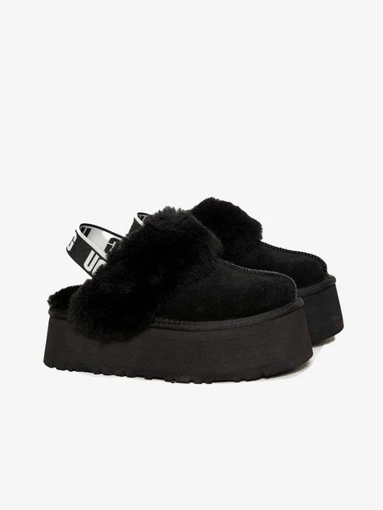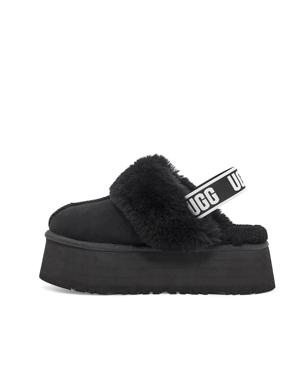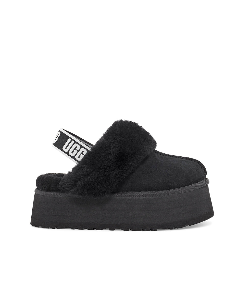 Cuando quieras que te vean, cuando quieras que te vean venir, cuando quieras mirar hacia abajo y ver cierta distancia entre tú y el resto del mundo, elige Funkette. Tiene un forro completo de piel de oveja acogedora. Sin mencionar el exterior de gamuza y nuestra correa trasera segura con diseño de fuente The Graphic UGG™. La suela exterior de este producto es una espuma de EVA de caña de azúcar que nos permite reducir la dependencia de los combustibles fósiles al reemplazar el etileno a base de petróleo, o una suela exterior Treadlite by UGG™.