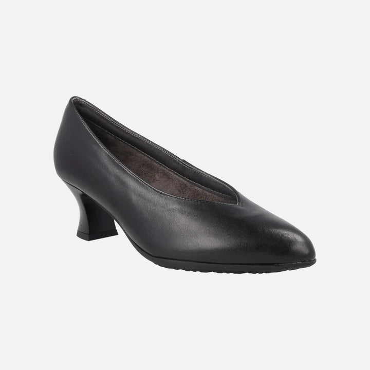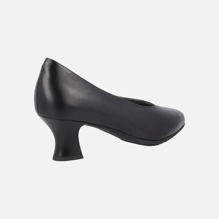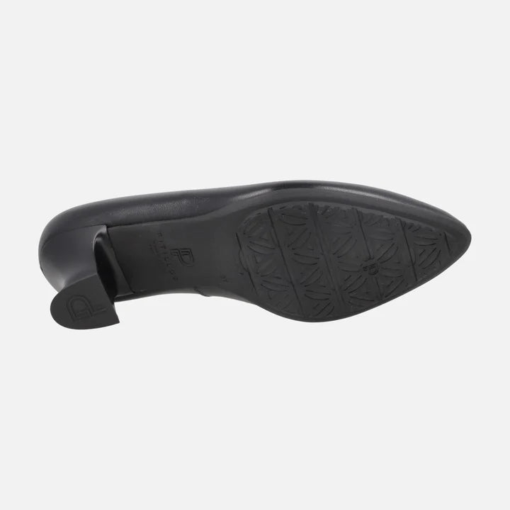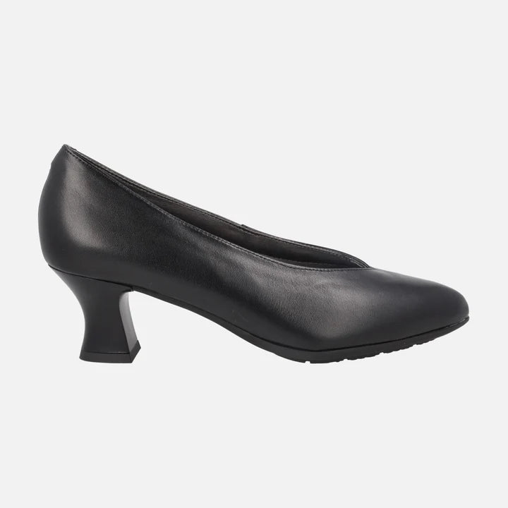 Zapatos de tacón de estilo clásico de la marca Pitillos modelo 10854 negro. Zapatos negros corte salón elaborados en piel, con tacones bajos de 5,5 cm de altura. Interior textil. Piso sintético.
