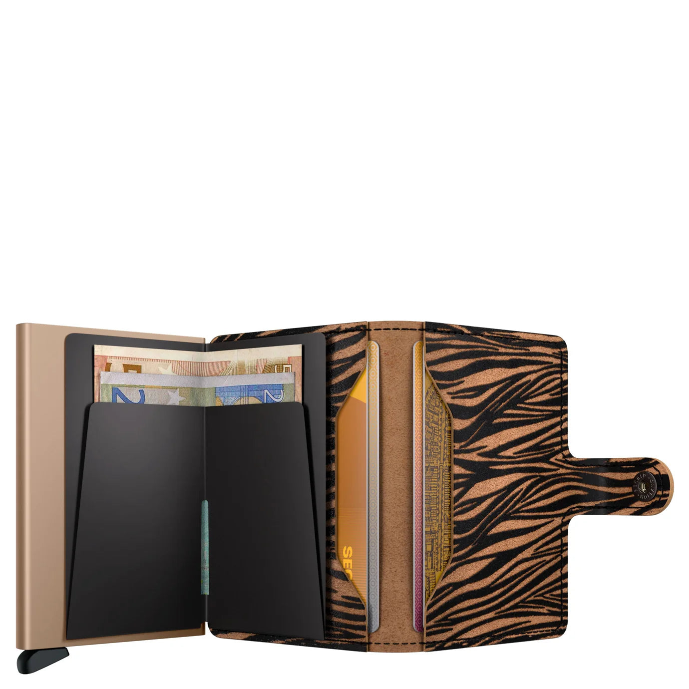 La Secrid Miniwallet es pequeña en tamaño y sorprendentemente grande en capacidad de almacenamiento. Esta miniwallet puede contener 4 tarjetas engrosadas o 6 planas, 4 tarjetas adicionales, billetes, recibos y tarjetas de visita. La Miniwallet combina lo mejor de ambos mundos. En la carcasa caben billetes, recibos y tarjetas, mientras que el Cardprotector de aluminio permite que las tarjetas se deslicen hacia fuera con un simple movimiento y las protege de dobleces, roturas y comunicaciones inalámbricas no deseadas (a prueba de RFID).