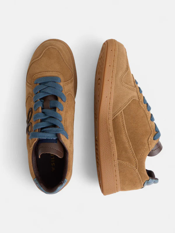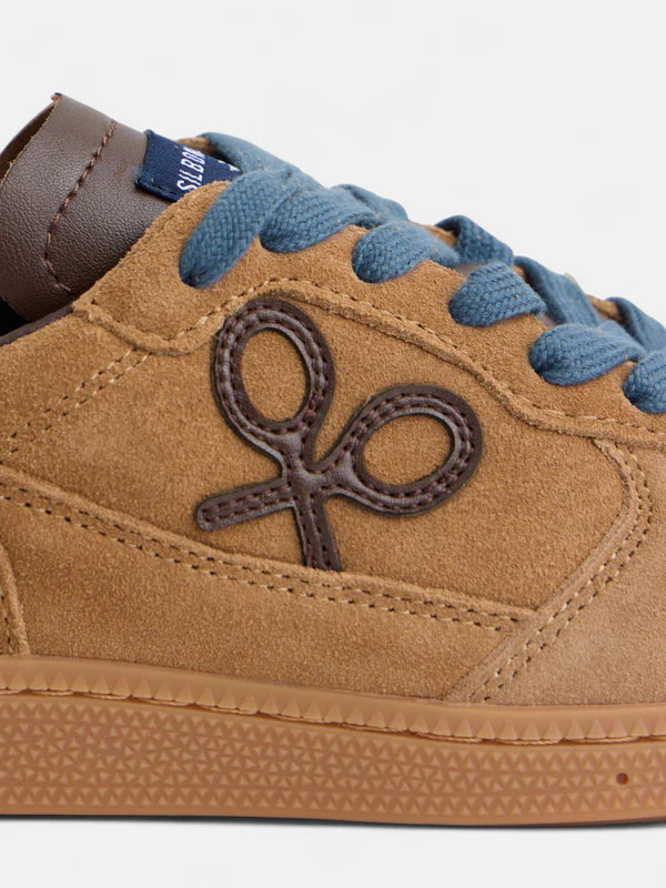 Zapatilla casual piel mostaza confeccionadas en piel. Presenta aplique de piel de raqueta lateral, cierre con cordones y lengüeta con detalle de letras Silbón. Cuenta con suela de goma confortable, interior en piel suave, y letras grabadas en la parte trasera. Tiene cordones de repuesto.