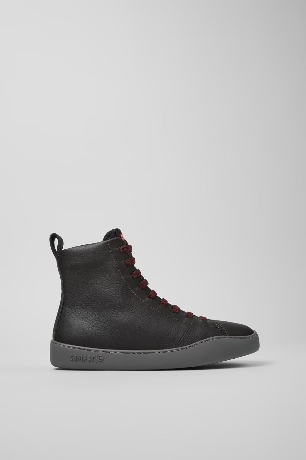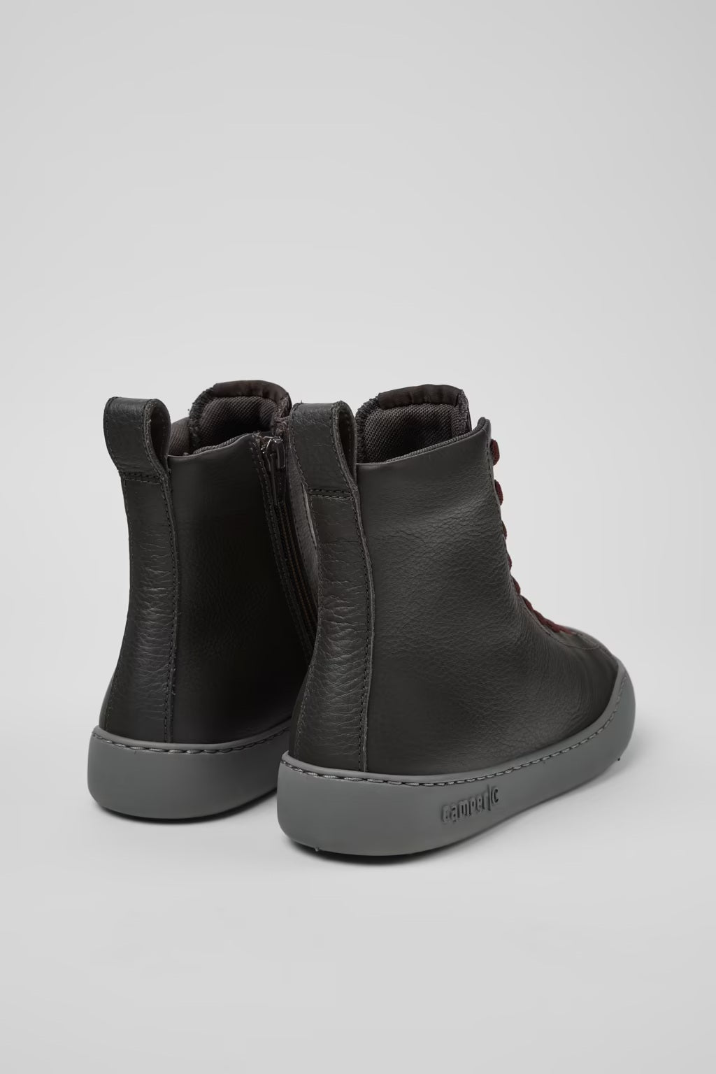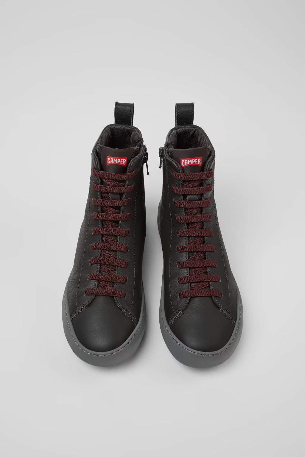 Botas de media caña grises para mujer de piel vacuna con plantillas OrthoLite® Recycled™, cordones elásticos y suelas de EVA.