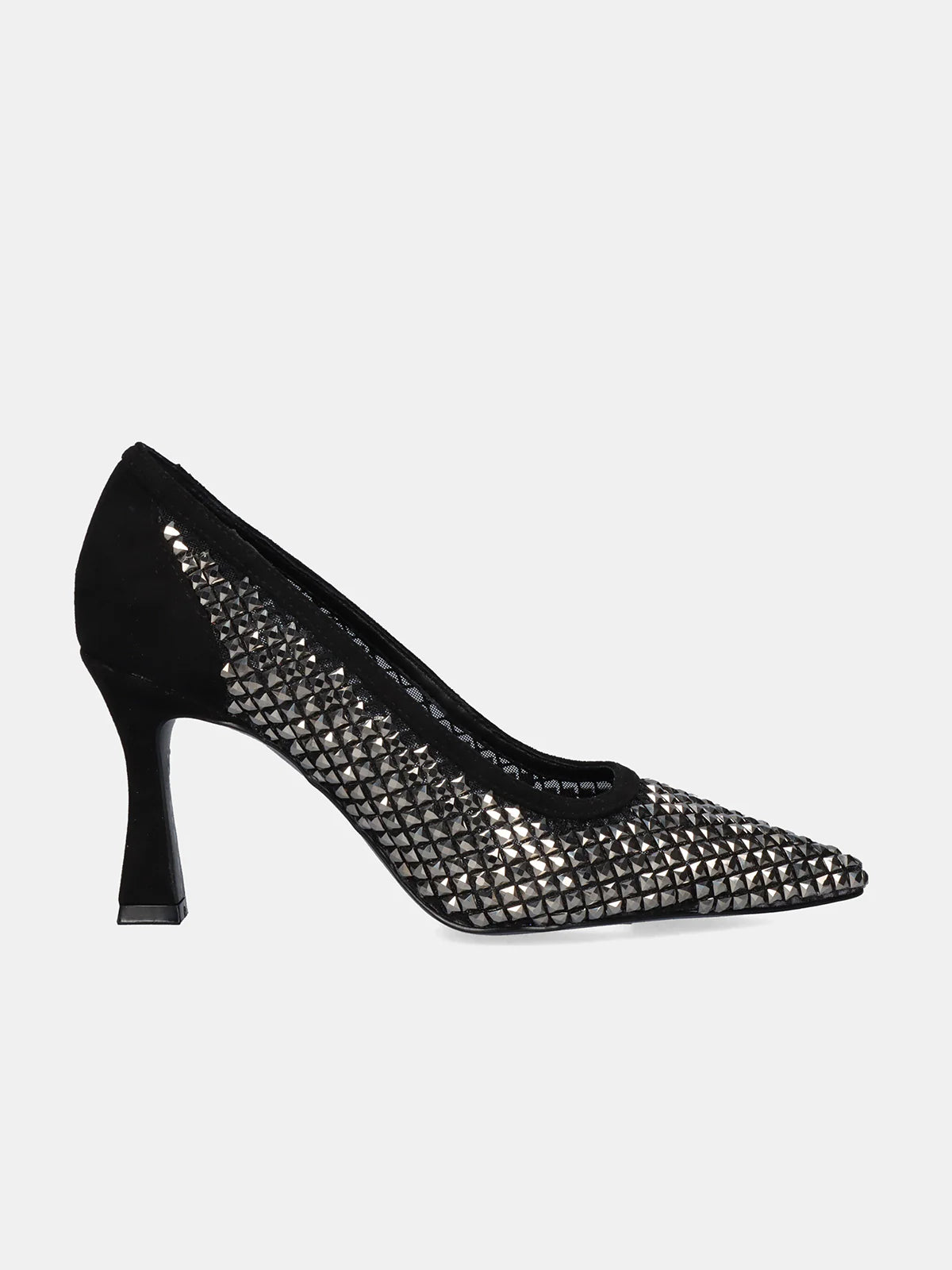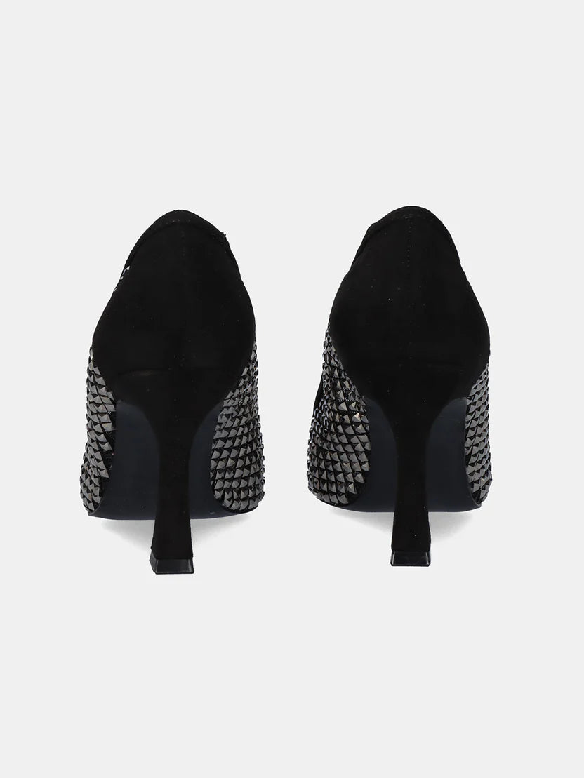 Estos zapatos de tacón con brillantes en color pewter son la definición perfecta de elegancia contemporánea. Su diseño estilizado y los destellos sutiles de los brillantes convierten cada paso en una declaración de estilo.