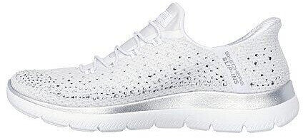 Añade un poco de glamour a tus pasos con las cómodas Skechers Slip-ins®: Summits - Brilliant Shine. Diseñado con nuestro sistema Heel Pillow™, este modelo vegano cuenta con una parte superior de malla decorada con adornos de pedrería, cordones elásticos y una cómoda plantilla con amortiguación Skechers Air-Cooled Memory Foam™.