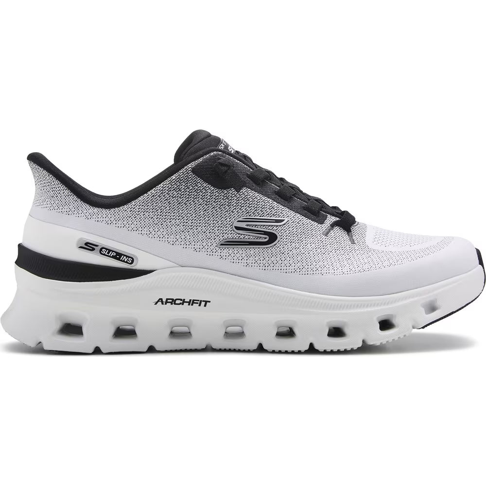 Disfruta de la innovación en calzado de apoyo reinventado con las Skechers Hands Free Slip-ins®: Arch Fit® Glide-Step® Pro. Diseñado con nuestro sistema Heel Pillow™, este modelo deportivo vegano y sin cordones cuenta con una parte superior técnica de knit de jacquard con cordones elásticos ya anudados, un sistema de plantilla extraíble Arch Fit®, tecnología de confort Skechers Air-Cooled Memory Foam™ y nuestra reciente media suela geométrica Glide-Step® con amortiguación.