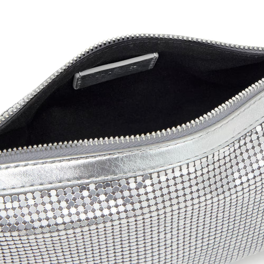 Bolso de hombro pequeño TOUS Salsi de piel vacuna con certificación LWG en color plateado. Cierre de cremallera. Asa corta de hombro. Medidas (alto x ancho x fondo): 13 x 21 x 10 cm.